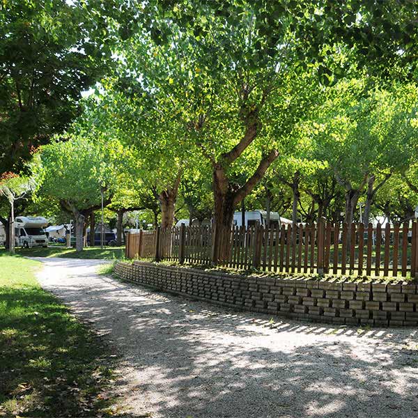Ampie piazzole delimitate di varie metrature e tipologie, con prese di corrente con spina europea (6A-1400W), possibilità di attacco e scarico acqua e attacco TV satellite.