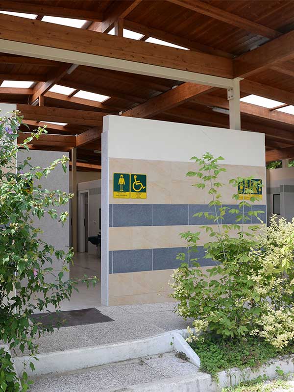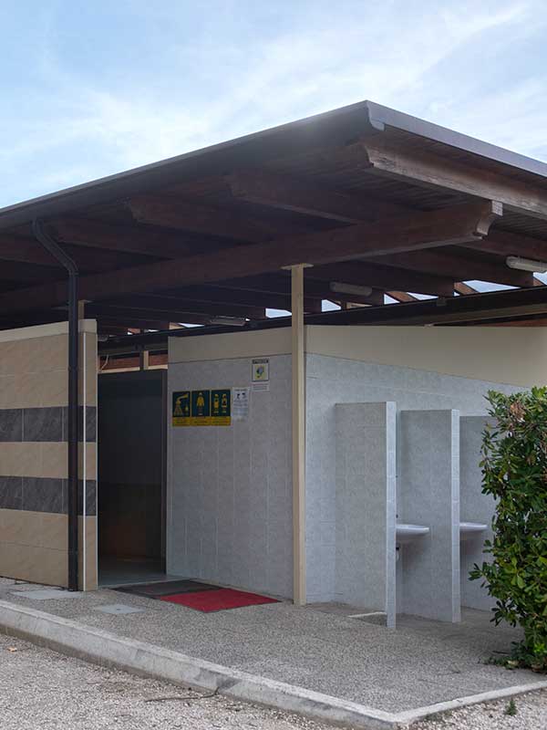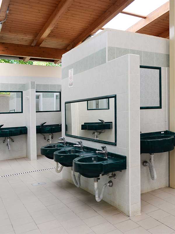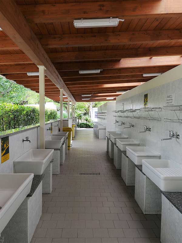 La pulizia delle cinque batterie di servizi collocate in zone diverse del campeggio è effettuata continuamente da un addetto ciascuna. La raccolta dei rifiuti viene effettuata più volte al giorno, eseguita con mezzi elettrici, per non disturbare gli ospiti.