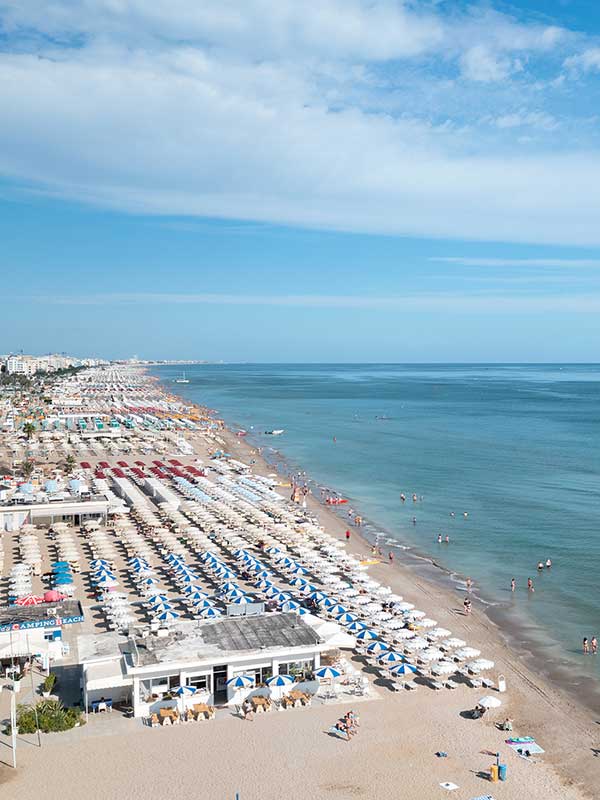 Il Camping Riccione si trova a circa 300 mt. dalla famosa spiaggia di Riccione divisa in zone attrezzate ed altre libere all'interno delle quali le più svariate attività acquatiche e non: surf, kite surf, vela, canottaggio, pedalò, escursioni in barca organizzate, sci d'acqua, animazione, beach volley, bocce, ecc.